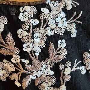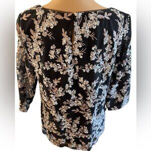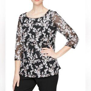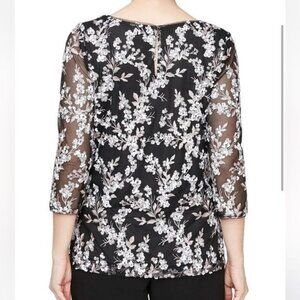 Alex Evenings Black Embroidered Medium Sequin Detail Sheer Mesh Overlay Top NWT