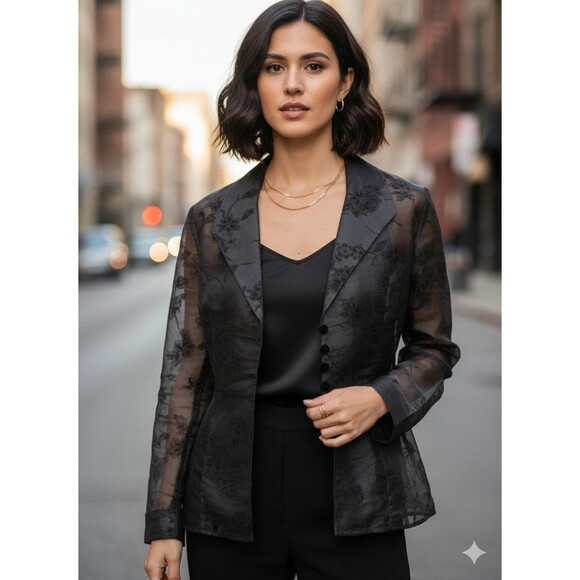 Elegant & Edgy: Alex Evenings Black Sheer Floral Evening Blazer