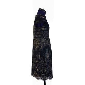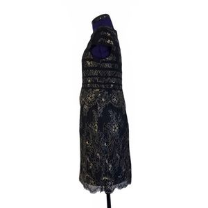 Alex Evenings Black Gold Lace Short Sleeve Dress