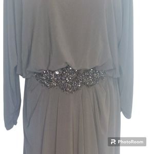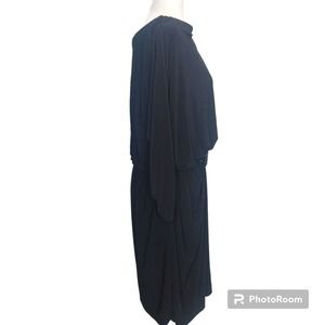 Alex Evenings Black Jersey Blouson Dress Black Rhinestone Embellishment SZ. 16W