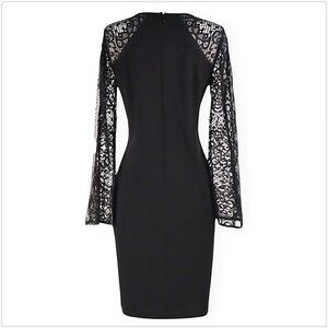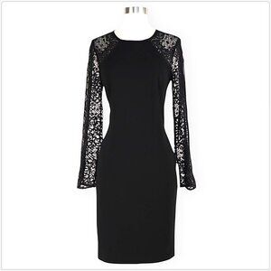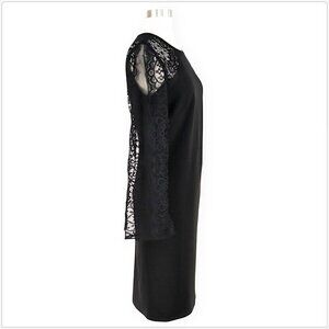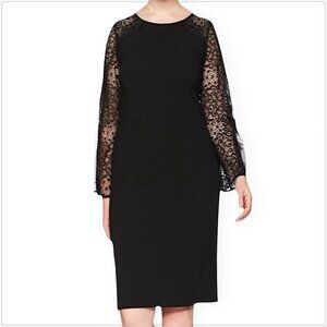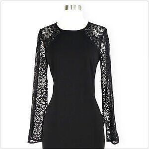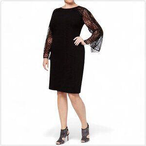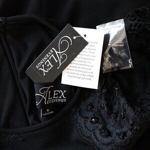 Alex Evenings Black Lace Illusion Bell Sleeves Jeweled Shift Dress New NWT 6
