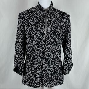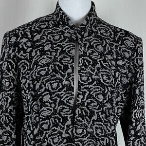 Alex Evenings Black Metallic Silver Glitter Event Glam Jacket Vintage Size L