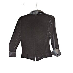 Alex Evenings Black Ruched Satin Collar Stretch Velvet Blouse S