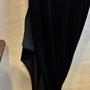 Elegant black formal evening dress. Features sparkling silver accents. Perfect for formal events. 46” long. Featuring a slit on side Very classy straps can be worn up or down