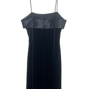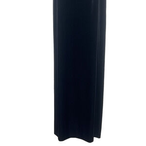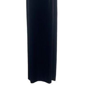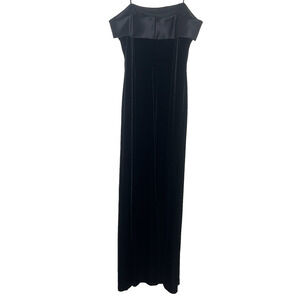 Elegant black maxi dress. Features sleek design. Perfect for formal occasions.