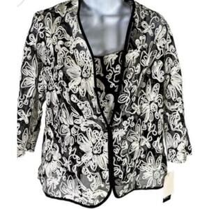 NWT Alex Evenings Black White Textured Tank Jacket Set Sheer Womens M