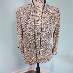 Alex Evenings Black and Tan Glitter Twinset small cardigan jacket set beaded cla