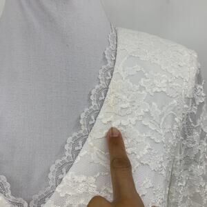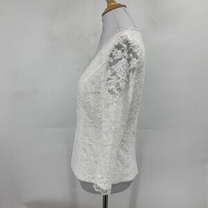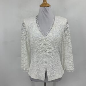 Alex Evenings Blouse Women S/M Lace Trim Embroidered Illusion Shoulder Pads