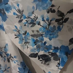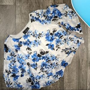 Expertly crafted from lightweight chiffon, this petite blouse features elegant bell sleeves and a unique three-tiered hem. Its colorful print adds a touch of whimsy, making it perfect for any elegant look. Enjoy its flattering fit and versatile design for any occasion. Size: S/S. Material: 100% Polyester. Sleeves: 3/4. Color: Black/blue/green. Underarm (armpit to armpit): 45 cm. Length: Asymmetrical: 48 cm