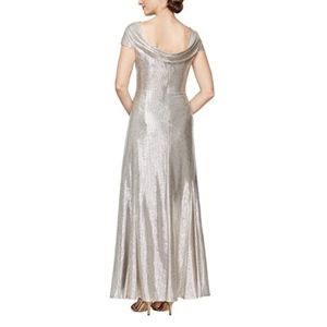 Alex Evenings cap sleeve cowl neck metallic evening floor length gown. Super light. Size 8. Excellent used condition. See pictures for measurements. 32