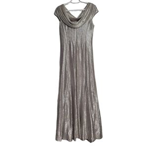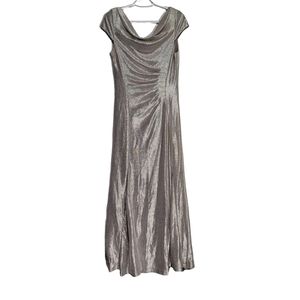 Alex Evenings Cap Sleeve Cowl Neck Metallic Evening Maxi Gown size 8