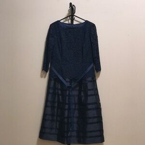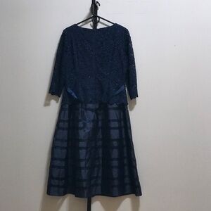 Alex Evenings Cocktail Dress with Lace Bodice, Illusion 3/4 Sleeves & Striped