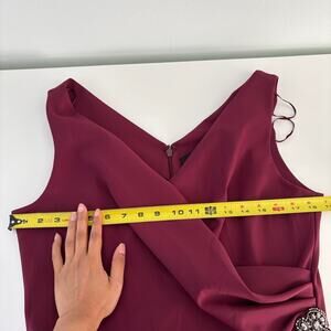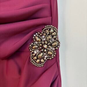 Alex Evenings Compression Dress Size 14 Ruffle Skirt Beaded Detail Wine Cocktail