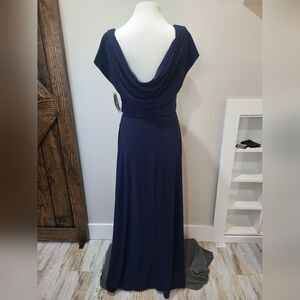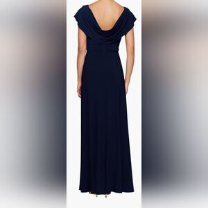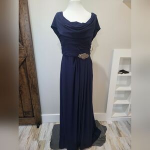 Alex Evenings Cowl Neck Beaded Waist Gown NWT size 10 navy blue