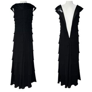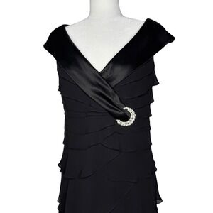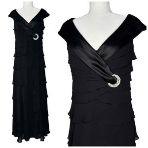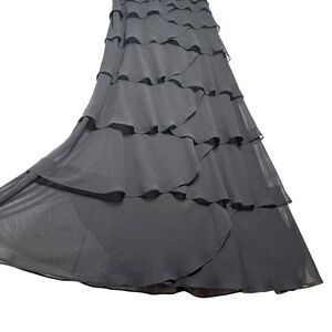 Alex Evenings Dress 12 Tiered Ruffle Chiffon Satin Gown Rhinestone Shawl Collar