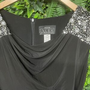 Alex Evenings Dress 14P Black Rhinestone Cowl Neck Cocktail Party 1719