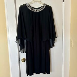 Alex Evenings Dress Black Crystal Neckline Chiffon Capelet Shift plus size 20W