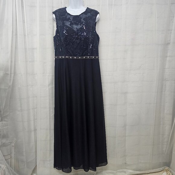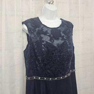Alex Evenings Dress Blue Maxi Lace Sequins Formal Floral Evening Wedding 14