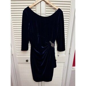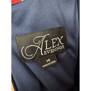Alex Evenings Dress Women 14 Plus Navy Blue Side-Ruched Beaded Event Occasion