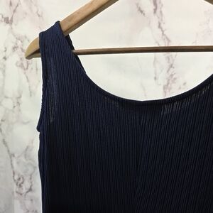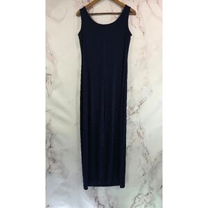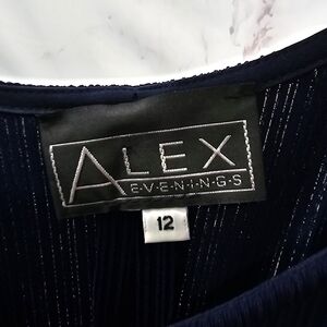 Alex Evenings Dress Womens 12 Large Navy Blue Slinky Long Maxi Rib Mother Bride
