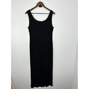 Alex Evenings Dress Womens 12P Black Sparkle Maxi Sleeveless Formal Glam Y2K