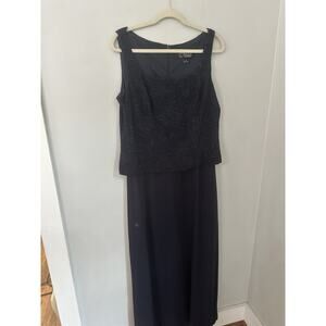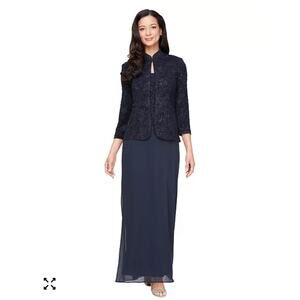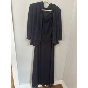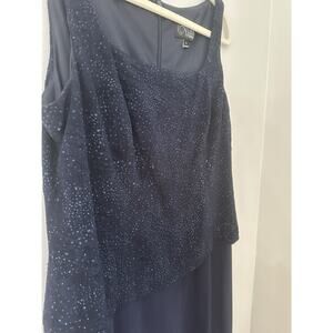 Alex Evenings Dress Womens 16 Navy Blue Sequin Jacket 2 Piece Formal Gown Set