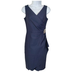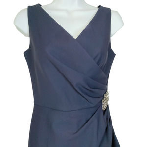 Alex Evenings Dress Womens 2 Blue Side Draped Rhinestone Brooch Wrap NEW
