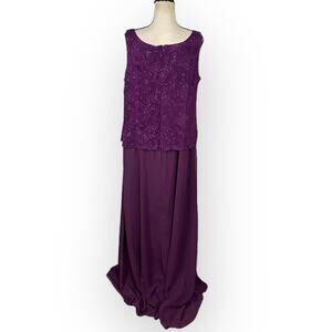 Alex Evenings Dress Women's Plus 16W Purple Glitter Jacquard Knit Maxi Gown NWT