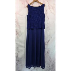 Alex Evenings Dress Womens XL 16 Royal Blue Long Midi Mother Bride MOB Sparkle