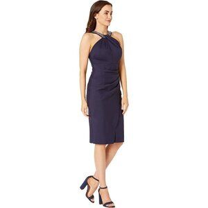 Alex Evenings Embellished Halter Sheath Dress Navy Womens Size 2