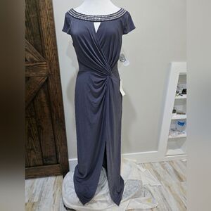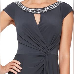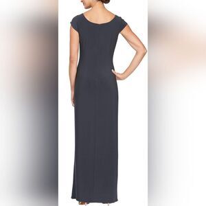 Alex Evenings Embellished Neck Cap Sleeve Column Gown NWT size 10 Charcoal Gray