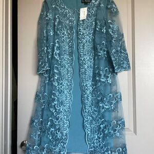 Designed with an embroidered lace overlay to create the look of a jacket, this shift dress is just in time for your next special occasion.