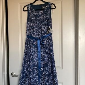 Alex Evenings Embroidered Tie Waist Sleeveless Dress (Plus) 14W
