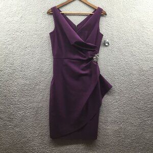 Alex Evenings Faux Wrap Fitted Dress with Jewel Accent Summer Plum 6