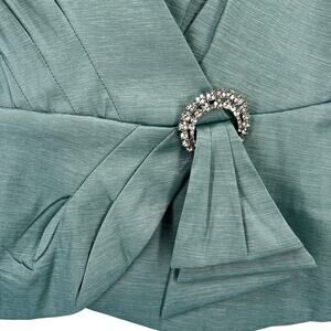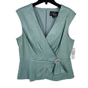 Alex Evenings Faux Wrap Pleated Sleeveless Top Rhinestone Buckle Sz XLP Sage
