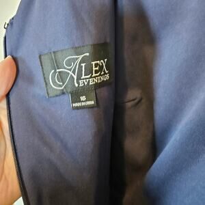 Alex Evenings Floral Embroidered Midi Dress V Neckline Navy Blue Plus Size 16