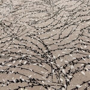 Lightweight tank top with a beige base. Black and white floral / leaf print. Silver colored glitter throughout. Scoop neckline.