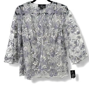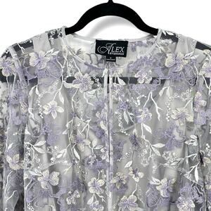 Alex Evenings Floral Metallic Mesh Twinset Jacket Shell Size Small Gray Purple