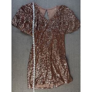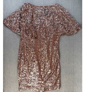 Alex Evenings Formal Dress Full Sequin Mini Dress Champagne Size 16W