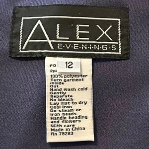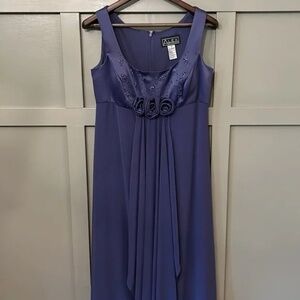 Alex Evenings Formal Gown Beaded Rosette Maxi Dress Purple Satin Chiffon Size 12