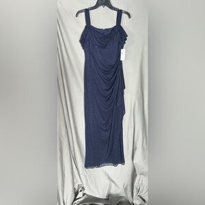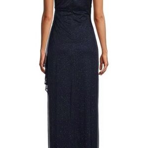 Alex Evenings Glitter Mesh Cold Shoulder Cap Sleeve Side Slit Ruched Gown