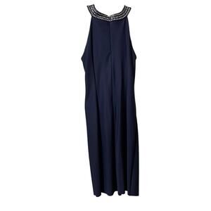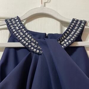 Alex Evenings Halter Embellished Navy Blue Cocktail Dress Size 6