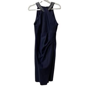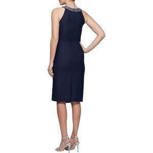 Alex Evenings Halter Navy Blue Cocktail Dress Size 6 Embellished Neck