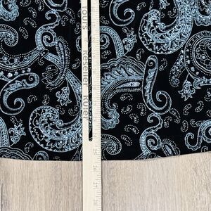 Alex Evenings 2-piece set in black with blue glitter print with an open front jacket and matching tank.