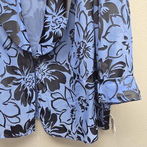 Alex Evenings Jacket Womens 3X Blue Black Floral Sheer Open Front Plus Size