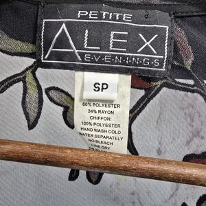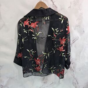 Alex Evenings Jacket Womens Small P Black Red Sheer Lily Mesh Satin Flower