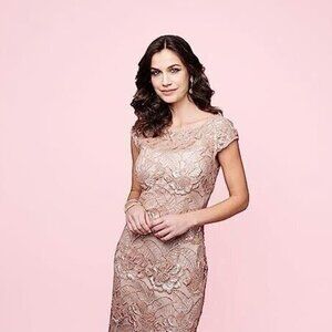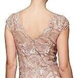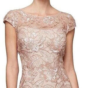 Alex Evenings Knee Length Embroidered Cocktail Sheath Dress Rose Gold 4 NWT