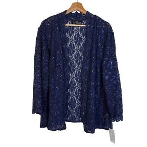 Alex Evenings Lace Sequin Cardigan Size 22W Navy Blue Mother of the Bride NWT