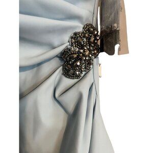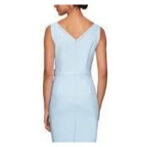 Alex Evenings Light Blue Party, Mother of the Bride Sleeveless Dress, Size 8 Style Type - Cocktail And Party Dress, Zips in the back. Material - 78% Nylon/22% Spandex. Material is stretchy. Side embellishment. Bust measures 36", the waist is 28" and the hips are 40". Hand wash. This Alex Evenings Light Blue Cocktail & Party Dress is the perfect choice for any special occasion. The sleeveless design and pencil dress style provide a flattering and comfortable fit. The dress is a size 8 and features a solid pattern with a slightly above knee length. Ideal for weddings or cocktail parties, this dress is sure to turn heads. The dress is made from high-quality materials and is designed to be both comfortable and stylish. With its beautiful blue color, this dress is perfect for any woman who wants to make a statement.