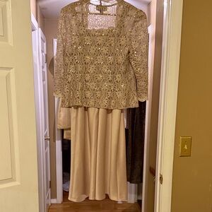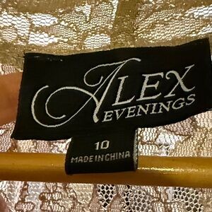 Alex Evenings Long Sleeve Lace Dress Set in Gold
